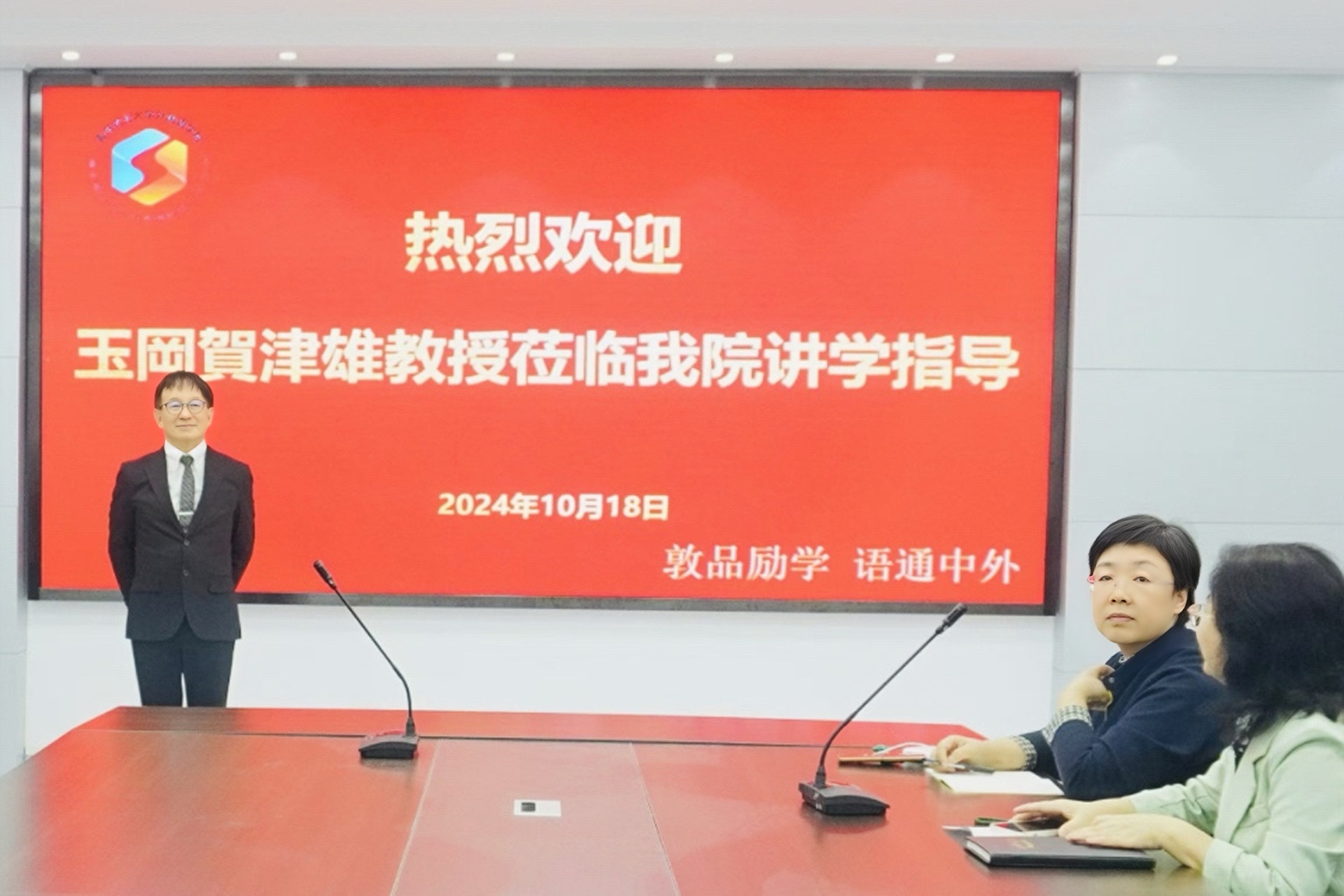 10月18日下午,上海大学特聘教授,日本国立名古屋大学名誉教授,心理语言学专家,博士生导师玉岡賀津雄教授应邀莅临betway88西汉姆联,在文经楼C220会议室作了题为《决策树分析法在语用学与社会语言学研究中的应用——兼谈SSCI论文的写作与投稿》的学术讲座。本次讲座由betway88西汉姆联副经理高秀雪主持,betway88西汉姆联部分教师及硕士研究生、本科生代表到场聆听。
