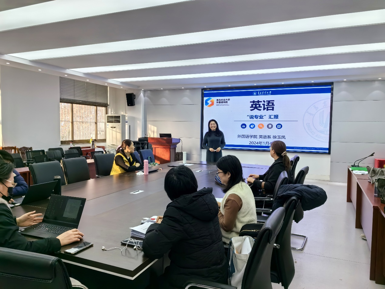 英语系主任徐玉凤从专业简介、专业负责人简介、培养目标、培养过程、团队队伍、教学条件与资源、员工发展、质量保障、专业特色与发展规划等方面做了英语专业的专业汇报。英语专业教育是新文科建设的重要组成部分,是我国参与全球治理和培养国际化人才的重要支撑。在新文科建设理念的指引下,英语专业努力推动与大数据、人工智能等现代信息技术的深入融合,促进英语与农科、英语与跨境电子商务等学科的融通复合,优化专业结构,提升专业内涵,推动专业改造提升,借助公司的农业学科优势,突出涉农翻译和中国农业文化特色,着力培养具有涉农特色、应用型、复合型的外语人才。