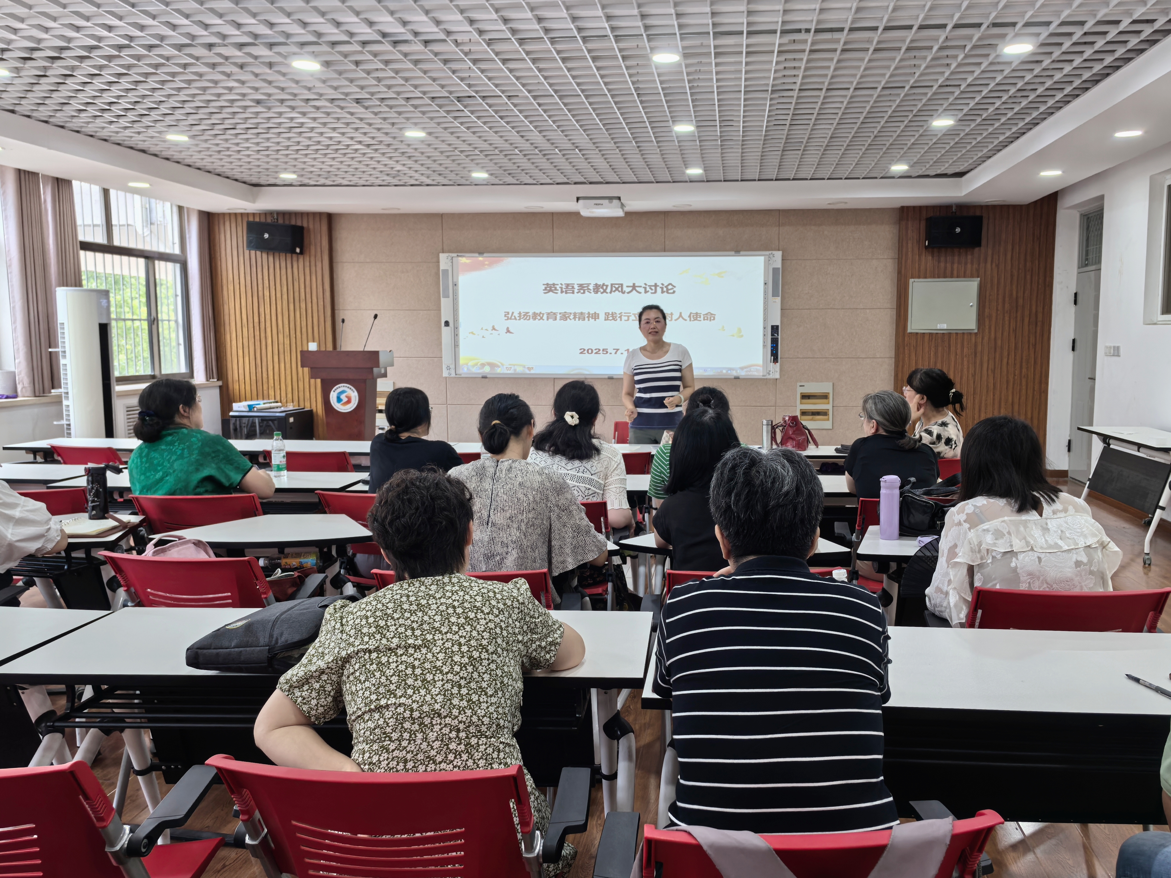 betway88西汉姆联英语系于2025年7月10日召开教风建设专题研讨会,展开教风大讨论,会议以“弘扬教育家精神,践行立德树人使命”为主题,聚焦教风建设、规范落实与教学创新,老师们一起学习了习近平总书记关于“四有好老师”的重要讲话和《中共中央 国务院关于弘扬教育家精神加强新时代高素质专业化教师队伍建设的意见》等文件。结合英语学科特色,深入探讨了如何将师德师风融入跨文化沟通、语言实践等教学场景,通过优良教风涵养良好学风,树立胸怀天下、以文化人的追求,涵养启智润心、因材施教的育人智慧,不断提升育人能力与水平。