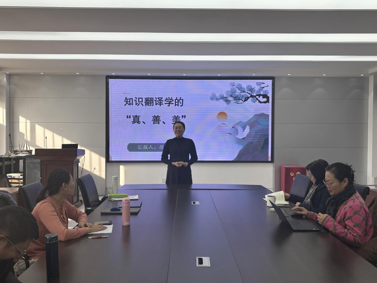 在学术报告中,三位主讲人分别就《机器学习驱动下中国城市的海外“他塑”形象研究》《“Crotty社会研究框架”下博士学位论文的研究设计》《知识翻译学的“真、善、美”》进行了深入讲解,分享了最新研究成果,为公司教学科研工作的创新发展和拓展提供了新的思路与启示。讲座过程中,现场教师积极参与互动交流环节,围绕研究方法的创新应用、跨学科理论的融合路径等问题展开热烈讨论。三位主讲人结合自身研究经验,回应了老师们关切的具体问题,现场气氛活跃而深入。此次讲座不仅拓宽了公司教师的学术视野,也促进了公司内部跨领域对话与合作。